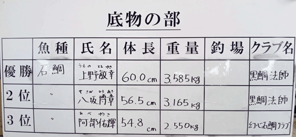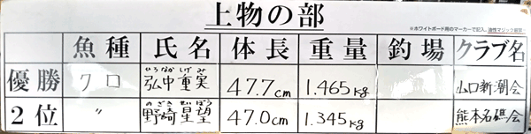 | 第42回ビッグ釣大会結果報告 | ||||||||||||