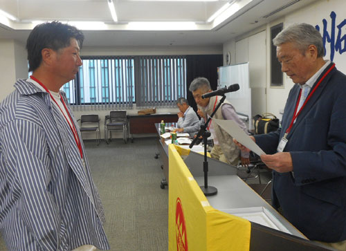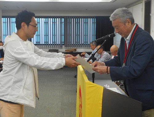 | 表彰式での牛島会長 |