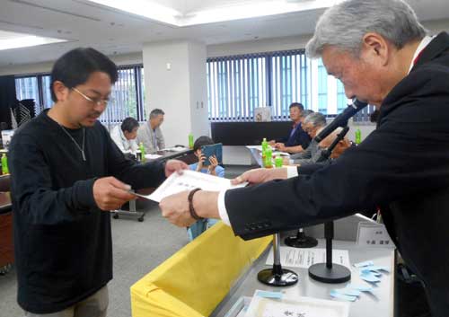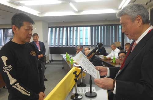| 表彰式での牛島会長 |