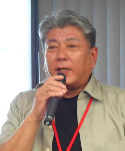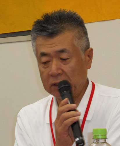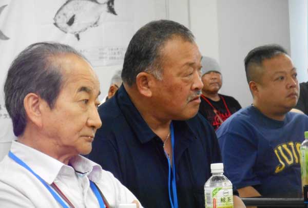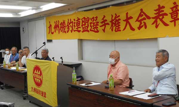 | 連盟選手権成績発表は齊藤事務局長 | 田中久幸事業部次長(新任) | 濵﨑和久熊本地区長(新任) | 山口グレ釣大会提案の弘中支部長 |