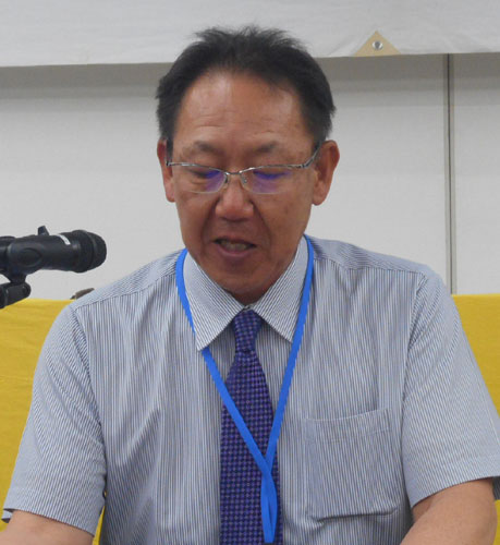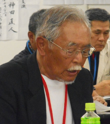 | 定期理事総会の参加者 | 牛島会長の挨拶 | 今回の議長(平山五島地区長) | ||